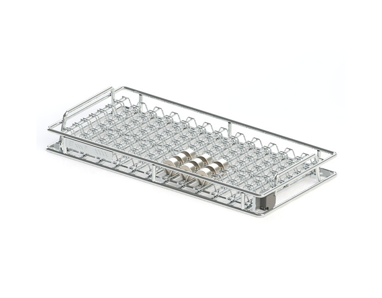 - Der RoStaCell können die Waschkörbe inkl. der Bodenroller zugeführt werden. Dank der Autonomie dieser Anlage, kann ein manueller Eingriff zum Trennen der Bodenroller und Waschkörbe entfallen.